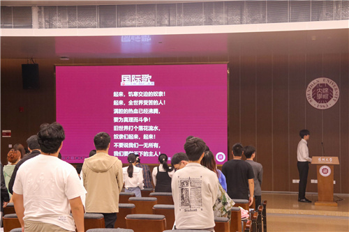 最后,全体起立,奏响国际歌。本次大会圆满完成了各项议程,在悠扬的国际歌旋律中,共青团69书吧
